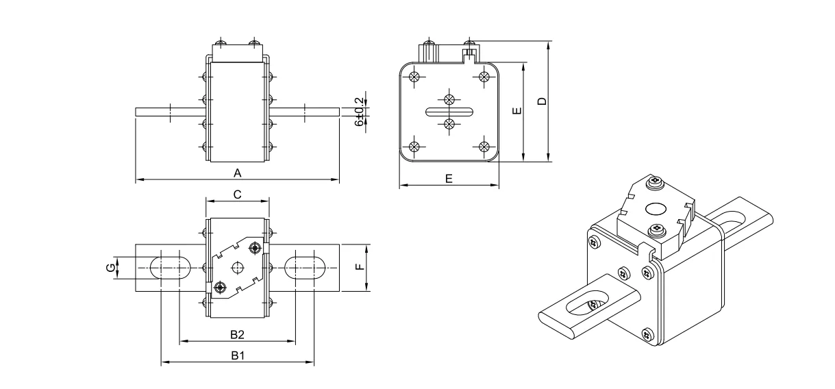 Високошвидкісний запобіжник на 1250 В прямокутного квадратного корпусу